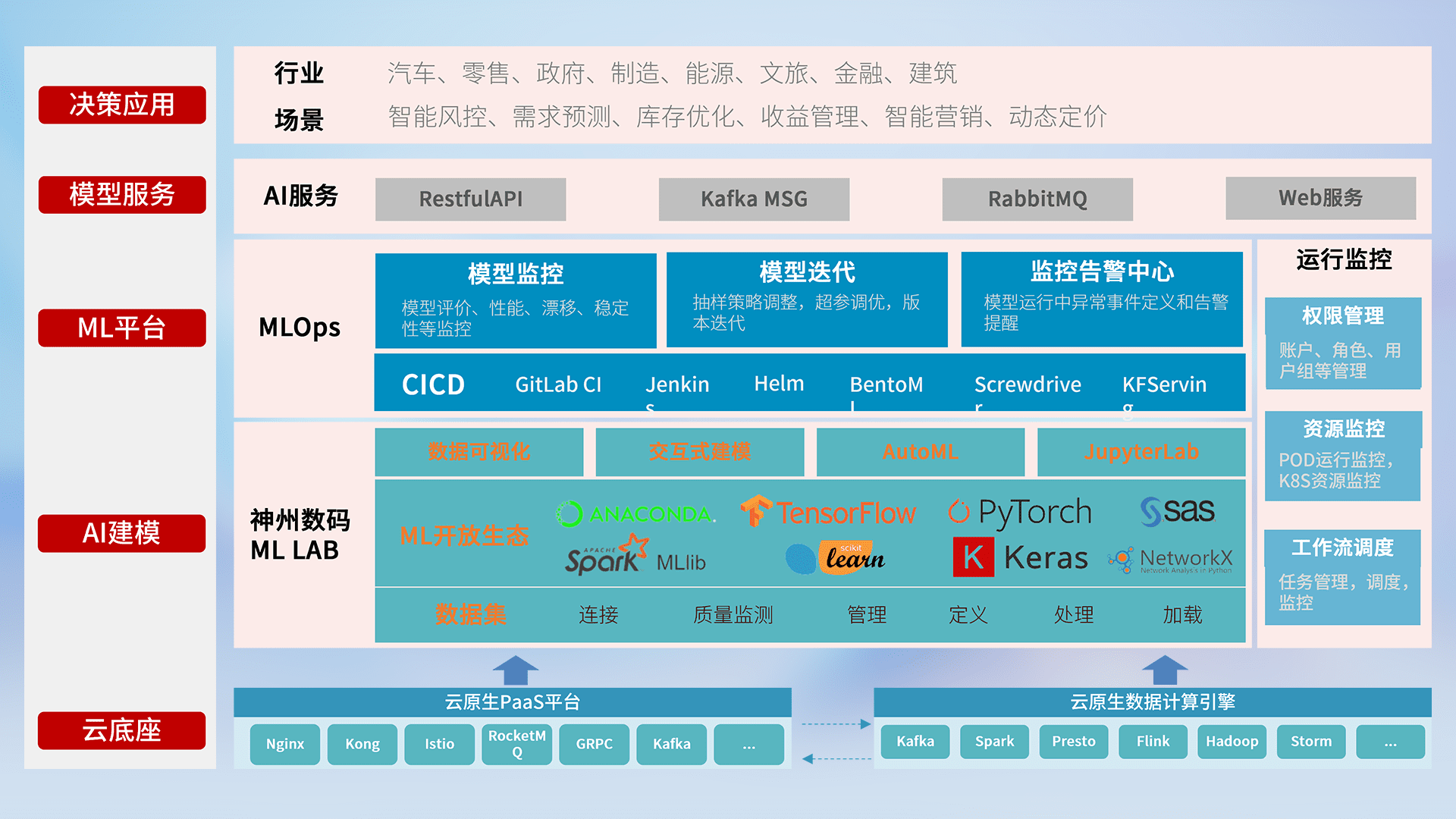 数据+模型双引擎驱动,,面向智能服务场景,,,快速灵活利用AI技术,,,支持业务决策,,,,助力企业智能化转型破局。。。。